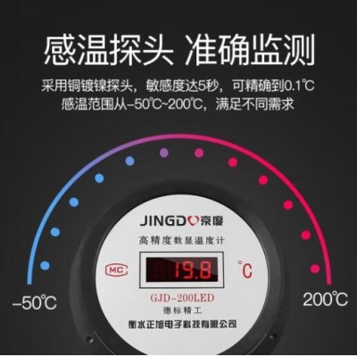 京度电子数显工业温度计水温计带探头高精度测水温表养殖大棚鱼泳池用 电池款